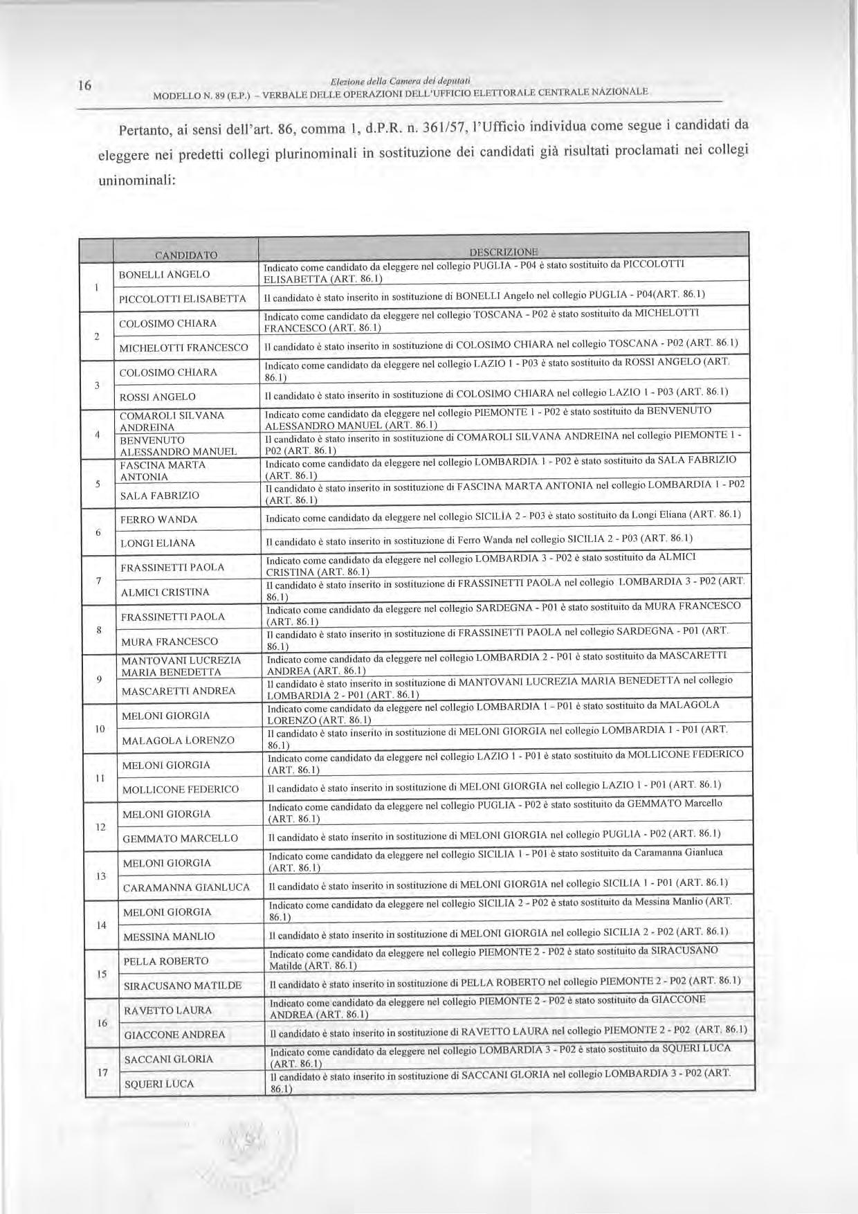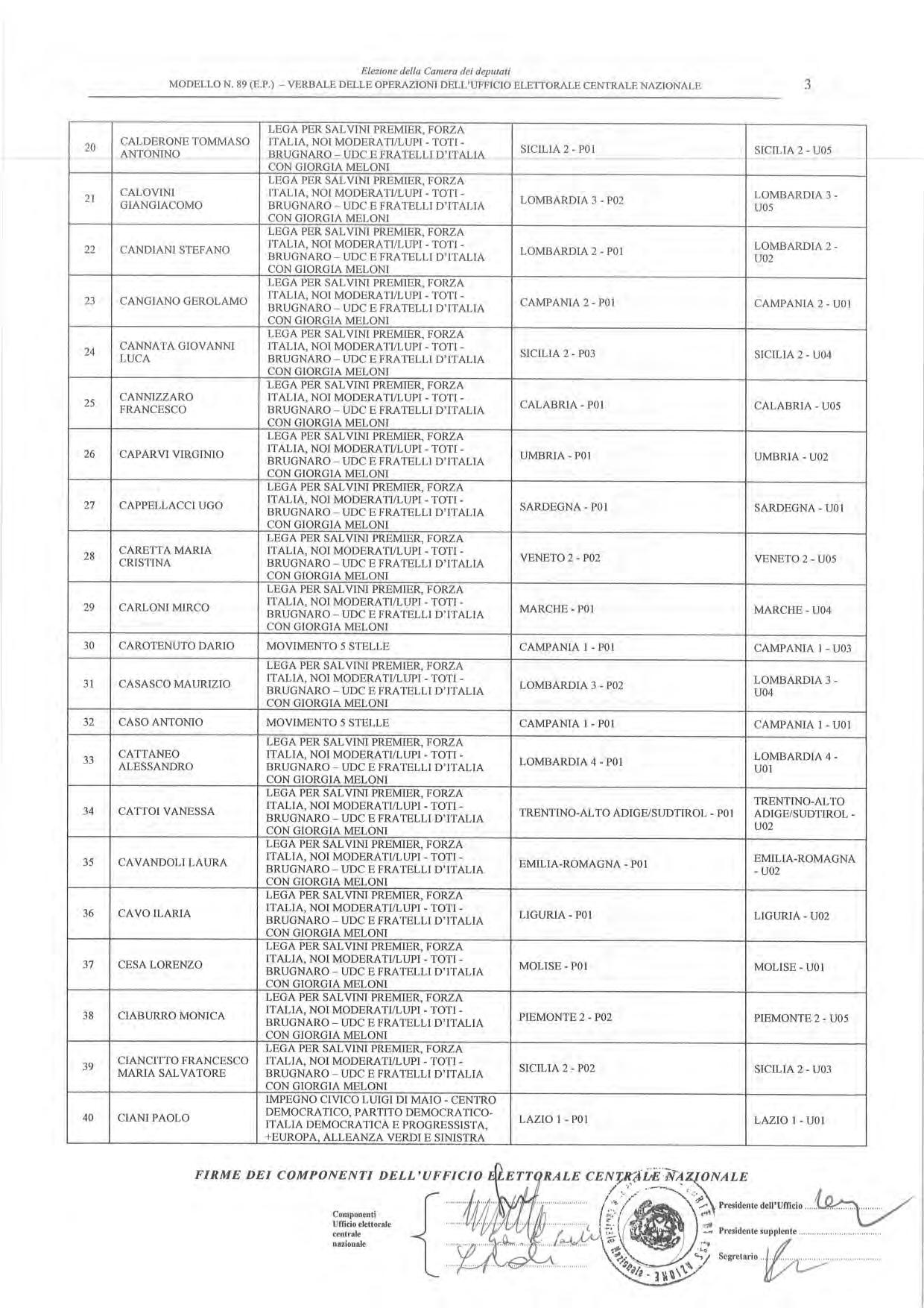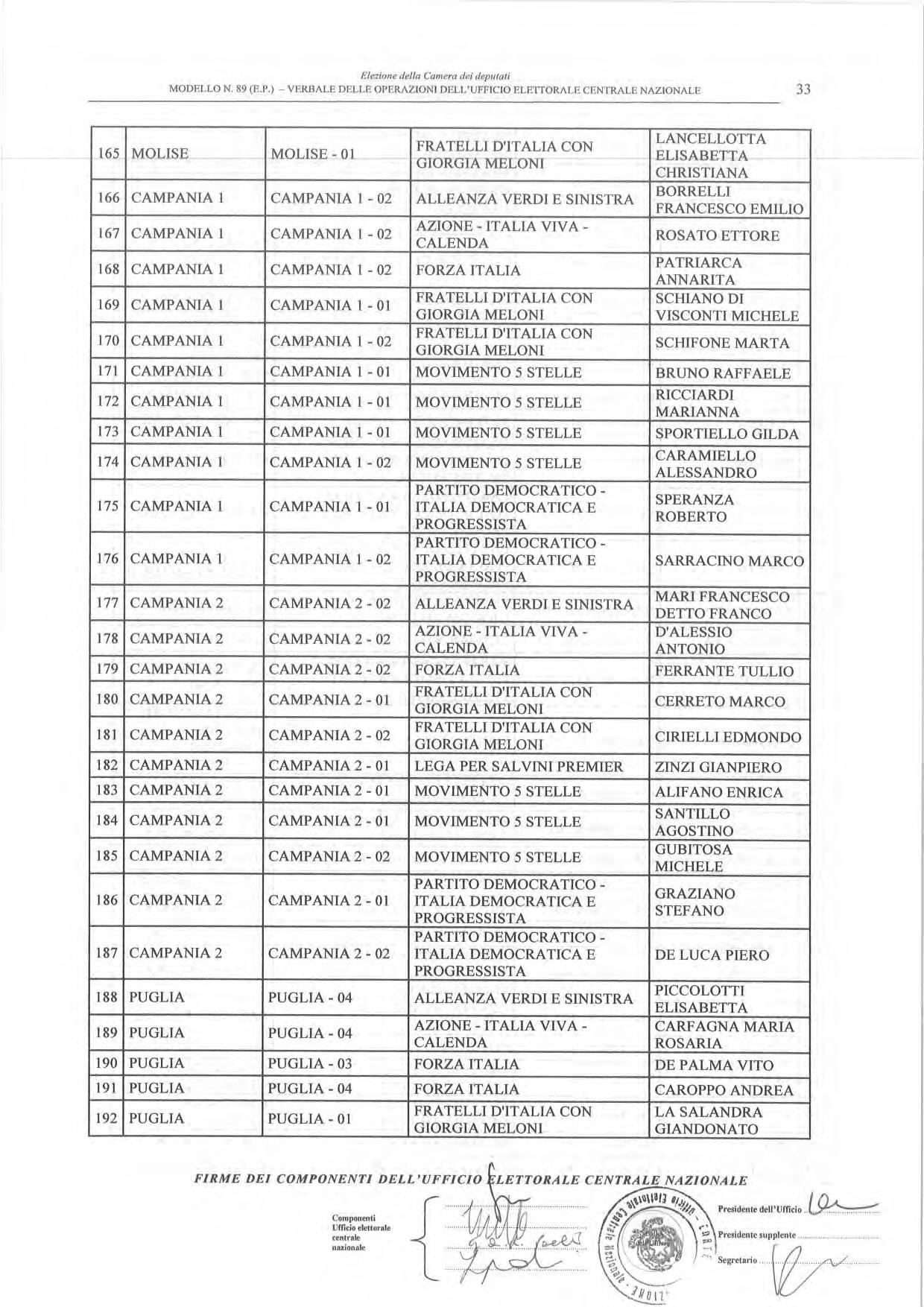 Elezioni 2022, il verbale dell'ufficio elettorale centrale
