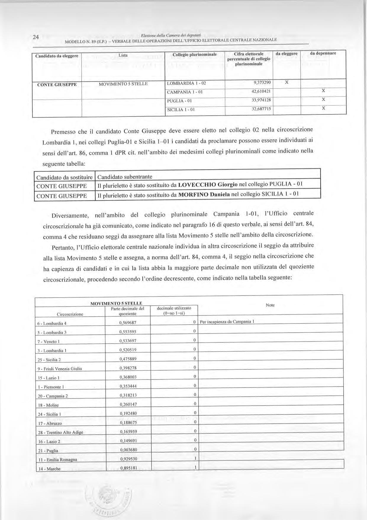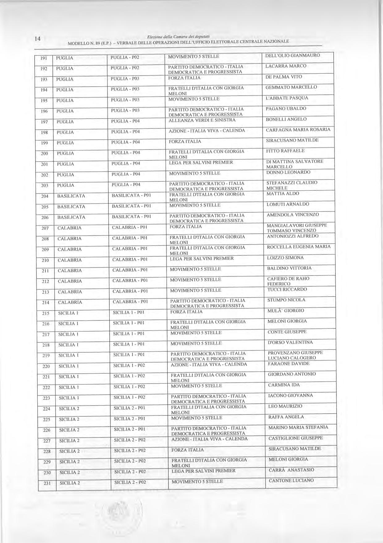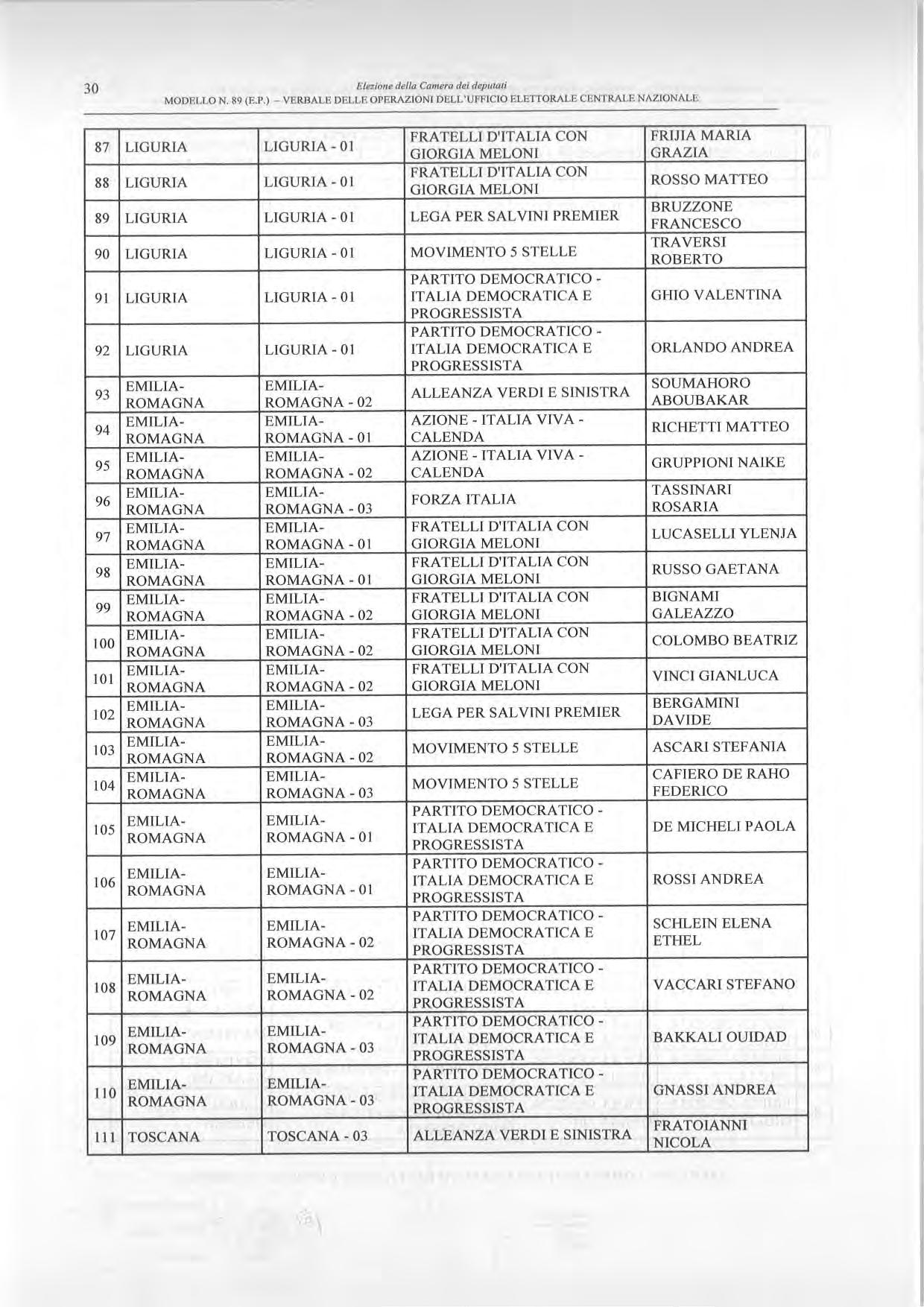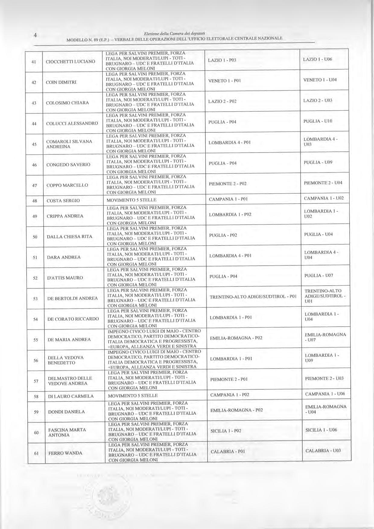 Elezioni 2022, il verbale dell'ufficio elettorale centrale