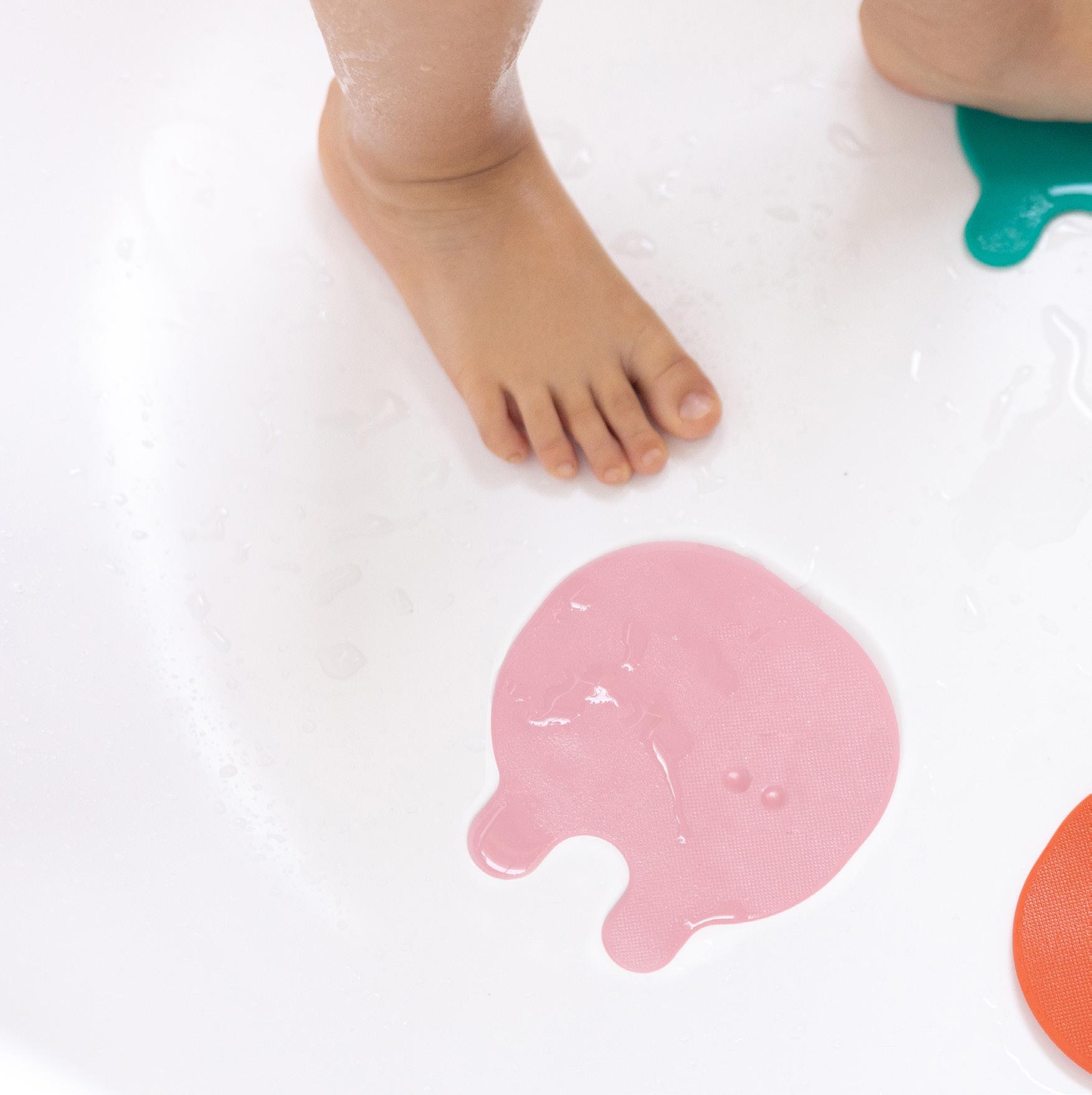 EN Enhance safety in your bathroom while keeping it fun. Made from durable and easy to clean vinyl with 6 suction cups on the bottom for strong adhesion. Great alternative for a bath mat , customize your setup and place wherever you need them the most.