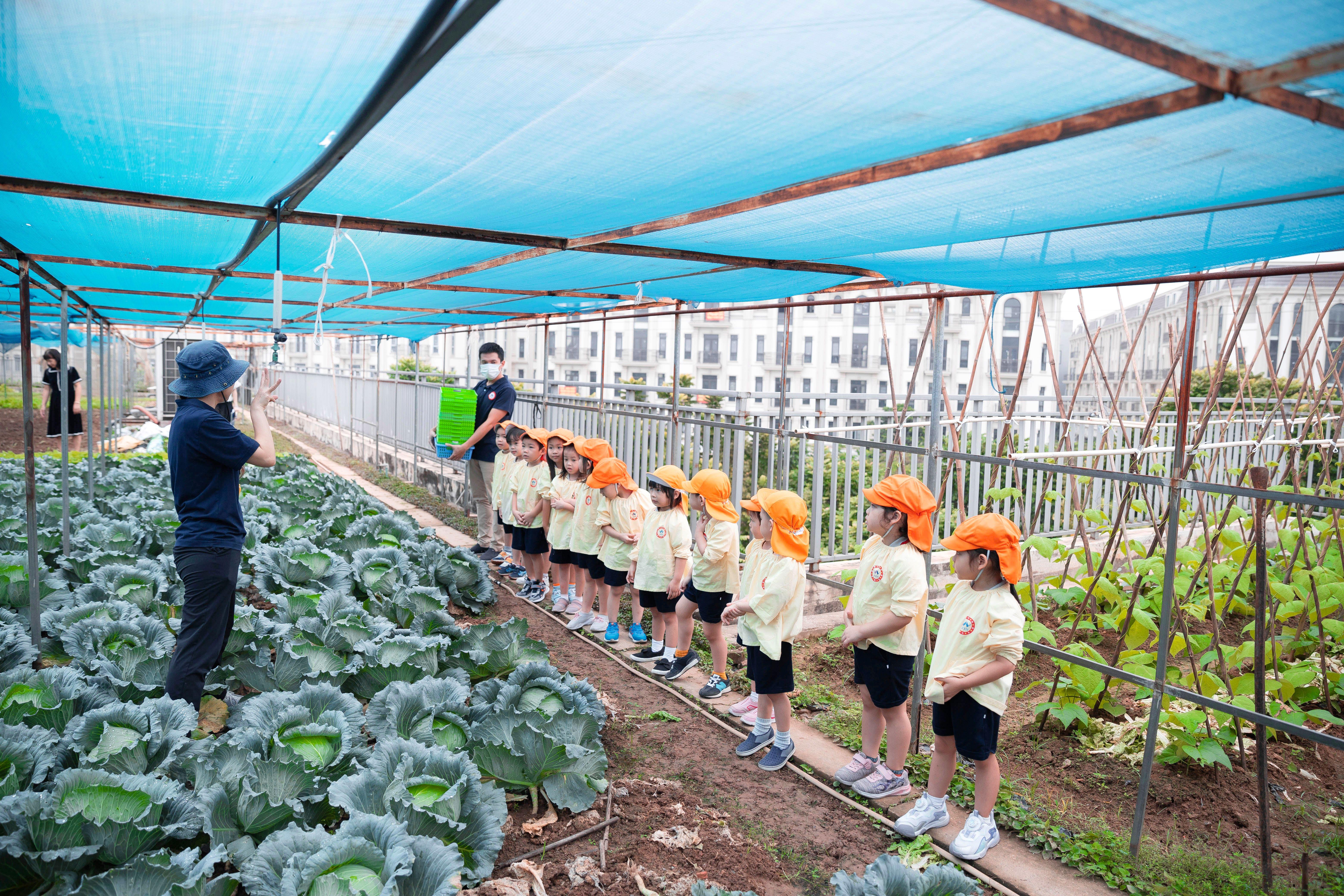 Vườn rau sạch ngang trời tại trường diện tích 2.000m2 và nông trại hữu cơ rộng hơn 2ha tại xã Thanh Cao, huyện Thanh Oai, Hà Nội cung cấp nguồn rau xanh, thực phẩm sạch cho học sinh, giáo viên, cán bộ trường và là điểm học tập, trải nghiệm thực tế cho học sinh.