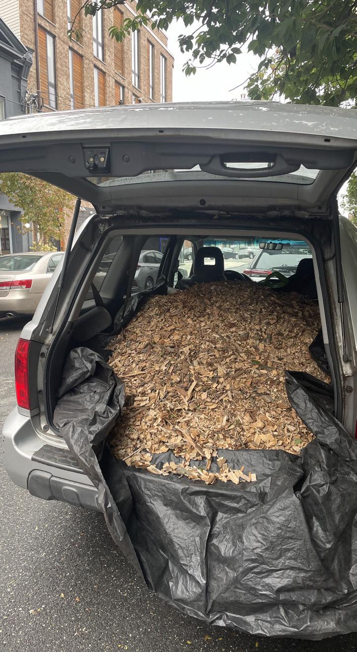 A Honda Pilot full of mulch from the Fairmount Organic Recycling Center
