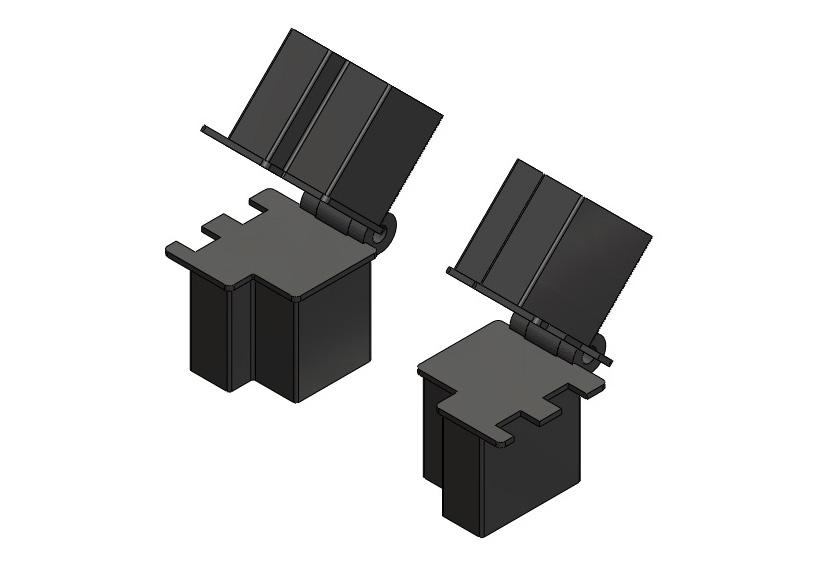Nella versione con cardini a premurare la ferramenta sarà in acciaio cadmiato pre verniciato o in una lega particolare resistente anticorrosione.
