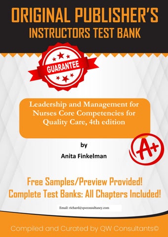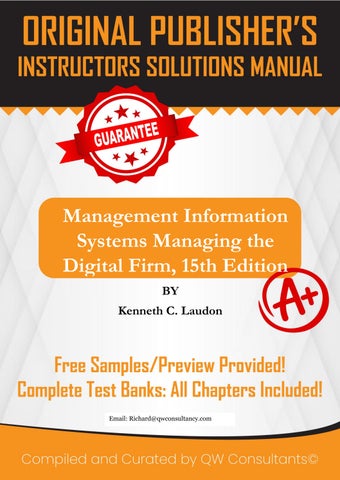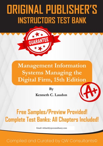 We sell quality test banks and solutions manuals for all books, across all subjects. We guarantee full access to the resource immediately after purchase. No emails, no follow ups! If you need ANY specific test bank or solution manual, reach out using the channels below. We will provide a free chapter sample before purchase! Email (richard@qwconsultancy.com); WhatsAPP (+1 (564) 544-6478) for enquiries. Email (richard@qwconsultancy.com); WhatsAPP (+1 (564) 544-6478) for enquiries.