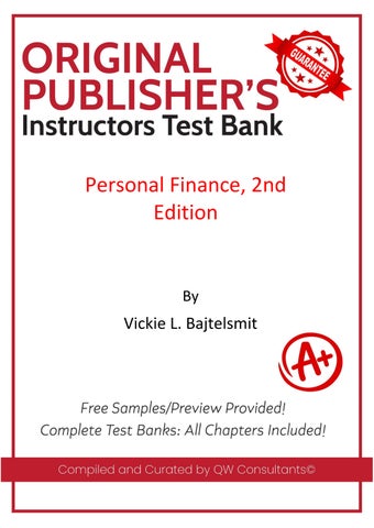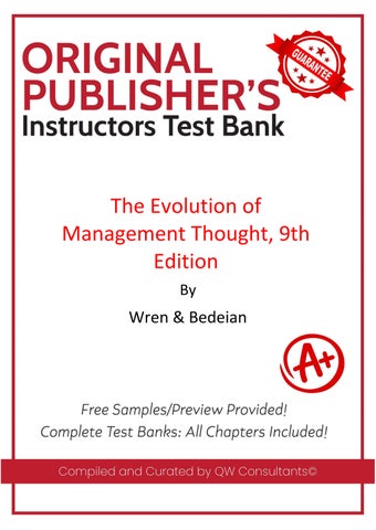 We sell quality test banks and solutions manuals for all books, across all subjects. We guarantee full access to the resource immediately after purchase. No emails, no follow ups! If you need ANY specific test bank or solution manual, reach out using the channels below. We will provide a free chapter sample before purchase! Email (richard@qwconsultancy.com); WhatsAPP (+1 (564) 544-6478) for enquiries. Email (richard@qwconsultancy.com); WhatsAPP (+1 (564) 544-6478) for enquiries.