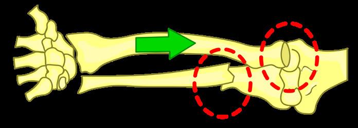 Fractura de Skillern: fractura completa del radio más fractura en tallo verde del cúbito.