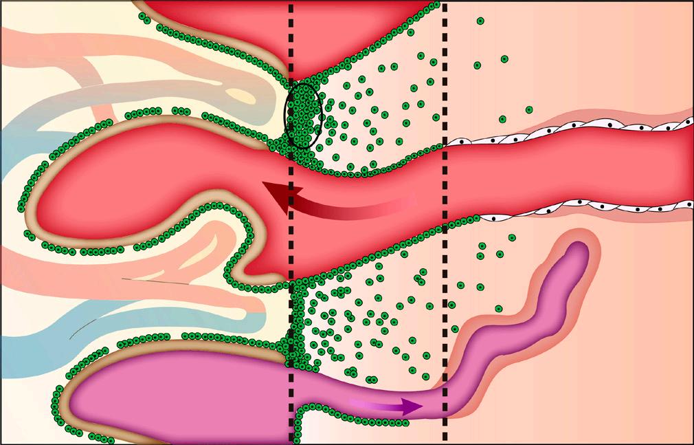 Implantación: A partir de la formación del cigoto se inicia una serie de divisiones por mitosis y su recorrido por la trompa de Falopio, de tal manera que al 4 día post fecundación ya hay de 16 a 32 células, en ese momento recibe el nombre de mórula. En los días sucesivos los espacios intercelulares forman una cavidad central llena de líquido llamada blastocele, en este periodo el ser humano recibe el nombre de blastocisto, en este estadio se produce la implantación en el endometrio materno (decidua) a los 6 a 7 días post fecundación.