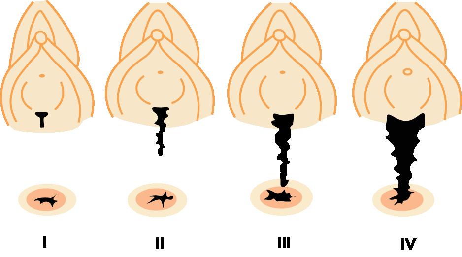♦ Grado IV: lesión del esfínter anal y de la mucosa rectal