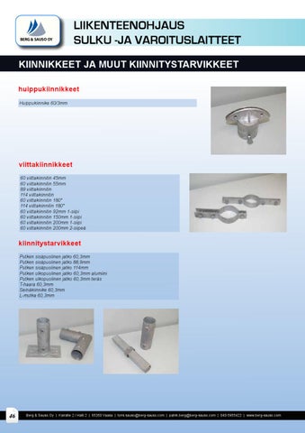 kiinnitystarvikkeet Putken sisäpuolinen jatko 60,3mm Putken sisäpuolinen jatko 88,9mm Putken sisäpuolinen jatko 114mm Putken ulkopuolinen jatko 60,3mm alumiini Putken ulkopuolinen jatko 60,3mm teräs T-haara 60,3mm Seinäkiinnike 60,3mm L-mutka 60,3mm