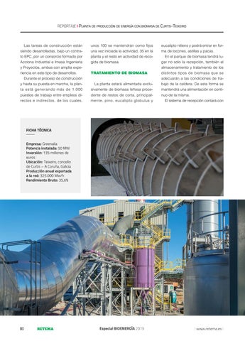 unos 100 se mantendrán como fijos una vez iniciada la actividad, 35 en la planta y el resto en actividad de recogida de biomasa. TRATAMIENTO DE BIOMASA La planta estará alimentada exclusivamente de biomasa leñosa procedente de restos de corta, principalmente, pino, eucalipto globulus y