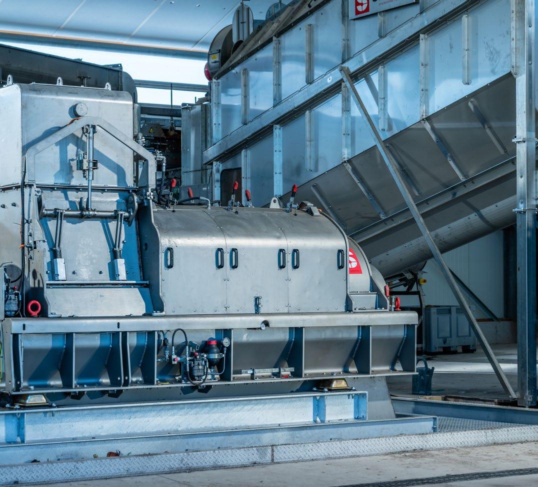 biogás. Los decantadores GEA se utilizan para separar los sólidos del digestor y deshidratarlos hasta obtener una consistencia seca que fluya libremente. Los biosólidos, que son descargados por el decantador bajo fuerzas equivalentes a 3.000 – 4.000 veces la gravedad, son un eficiente fertilizante rico en nutrientes. Este fertilizante es apto para su uso en jardinería, agricultura y silvicultura. El proceso permite que la tecnología de separación centrífuga de GEA convierta los residuos en valiosos medios energéticos y fertilizantes.