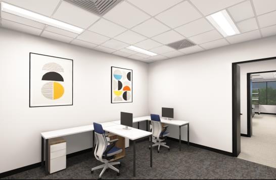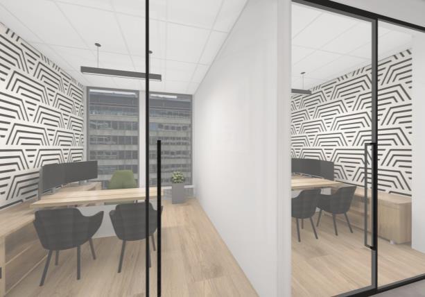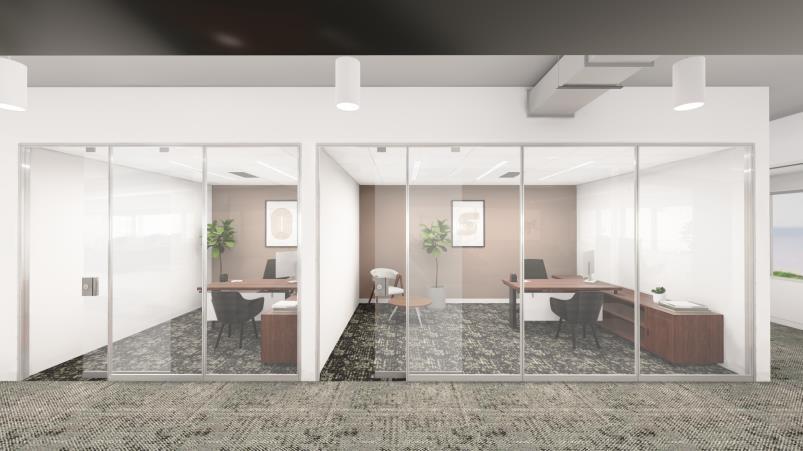 The project focused on creating an interactive walkthrough for two office suites within the same building for a single client, retaining existing wall finishes, flooring, and ceiling to highlight exposed material textures. The design included an employee lounge, kitchen, private offices, and conference rooms offering scenic views, blending functionality with aesthetic continuity