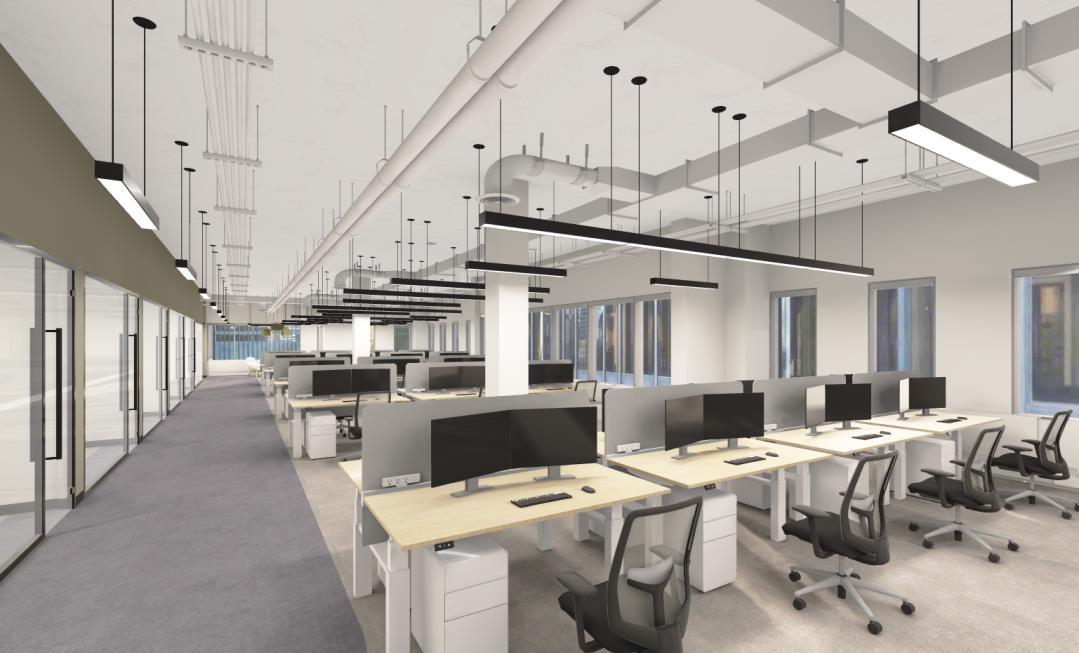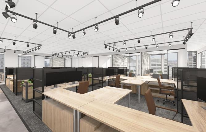 The project involved designing a 12,156-square-feet office floor aimed at creating a dynamic, engaging, and highly functional work environment. The spatial layout was designed to incorporate breakout areas, lounges, and game zones, while maintaining a high density of workstations. The design prioritized views, maximizing natural light and incorporating strategic spatial layout that encourage collaboration, productivity, and employee well-being