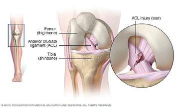 La lesión del ligamento cruzado anterior es el desgarro o esguince de ese ligamento, que es una de las fuertes bandas de tejido que ayudan a conectar el hueso del muslo (fémur) con la tibia. Las lesiones del ligamento cruzado anterior comúnmente se producen durante la práctica de deportes que implican detenerse o cambiar de dirección en forma repentina, saltar y aterrizar, como el básquetbol, el fútbol, el fútbol americano, y el esquí alpino.