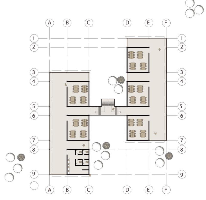The project is constructed and wood, featuring that, when combined, school. The design's height, which ventilation—crucial conditions of the The use of these essential due humidity and ventilation and priority in the construction.