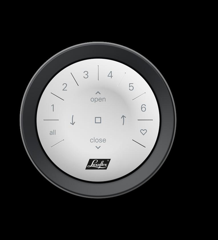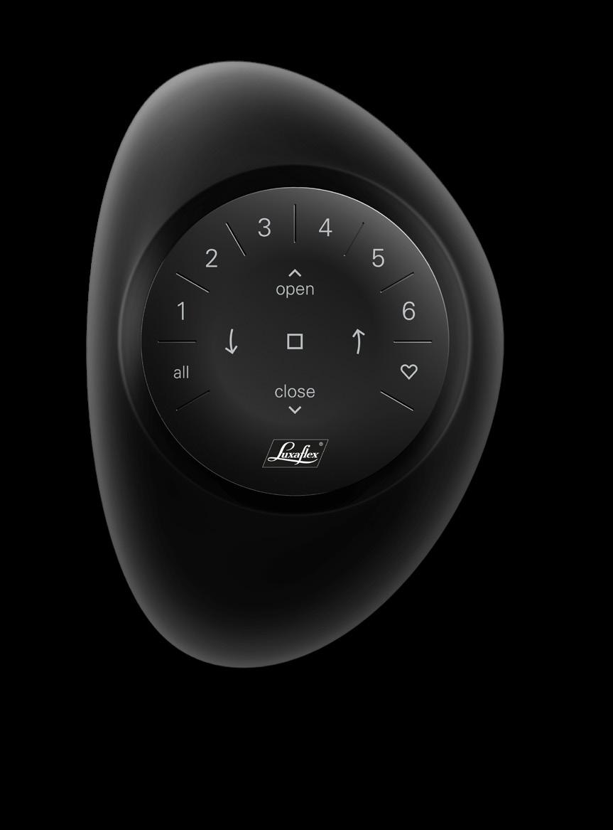 Met de PowerView® app, Pebble® afstandsbediening of de wandbediening die op de muur wordt gemonteerd, kun je snel, met één druk op de knop, een enkele raamdecoratie of groepen producten afstellen. De wandhouder, de Pebble® en de afstandsbediening zijn verkrijgbaar in meerdere kleuren. Raadpleeg je Luxaflex® specialist, deze informeert je graag verder over de uitgebreide mogelijkheden die dit systeem biedt.