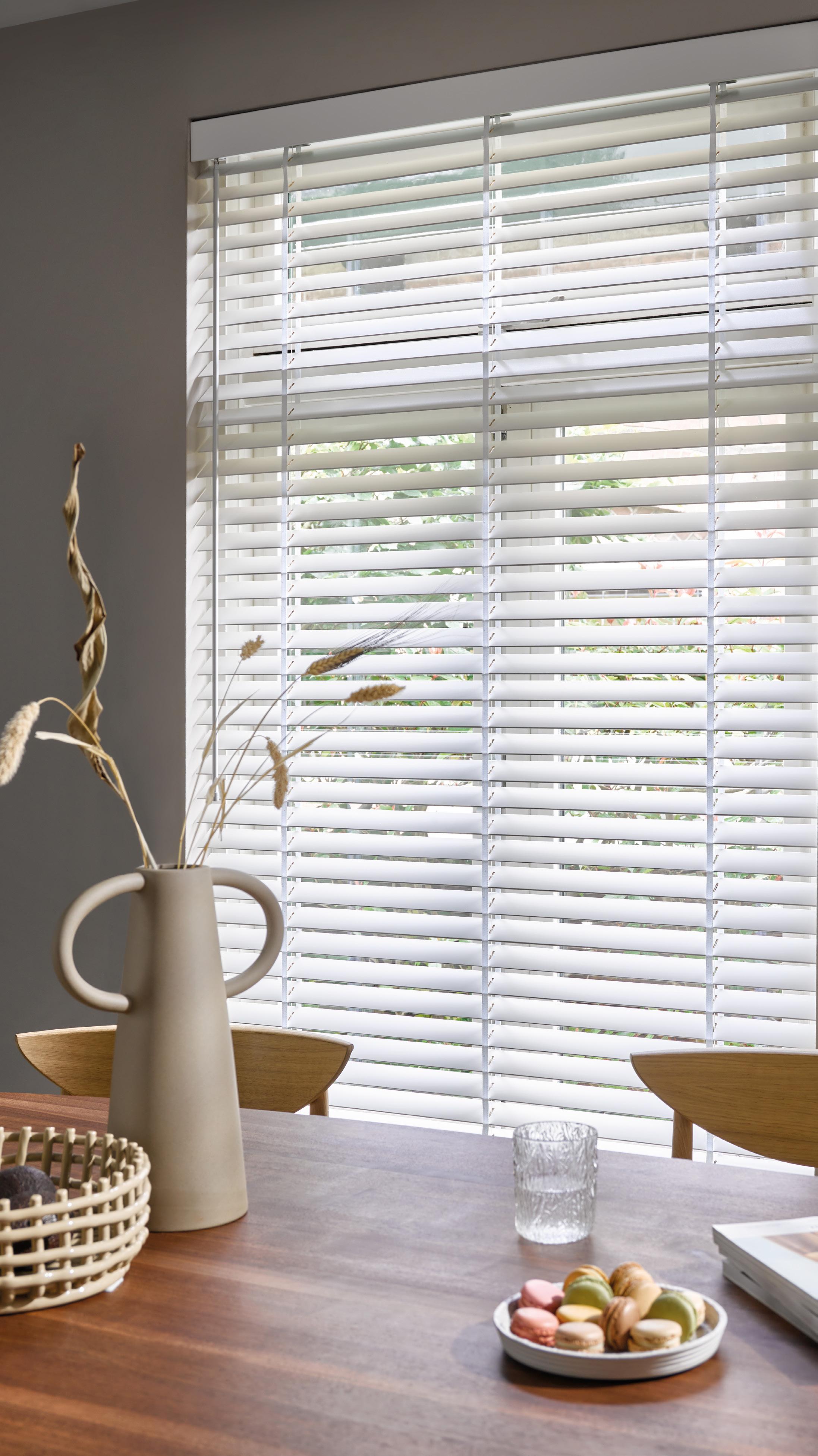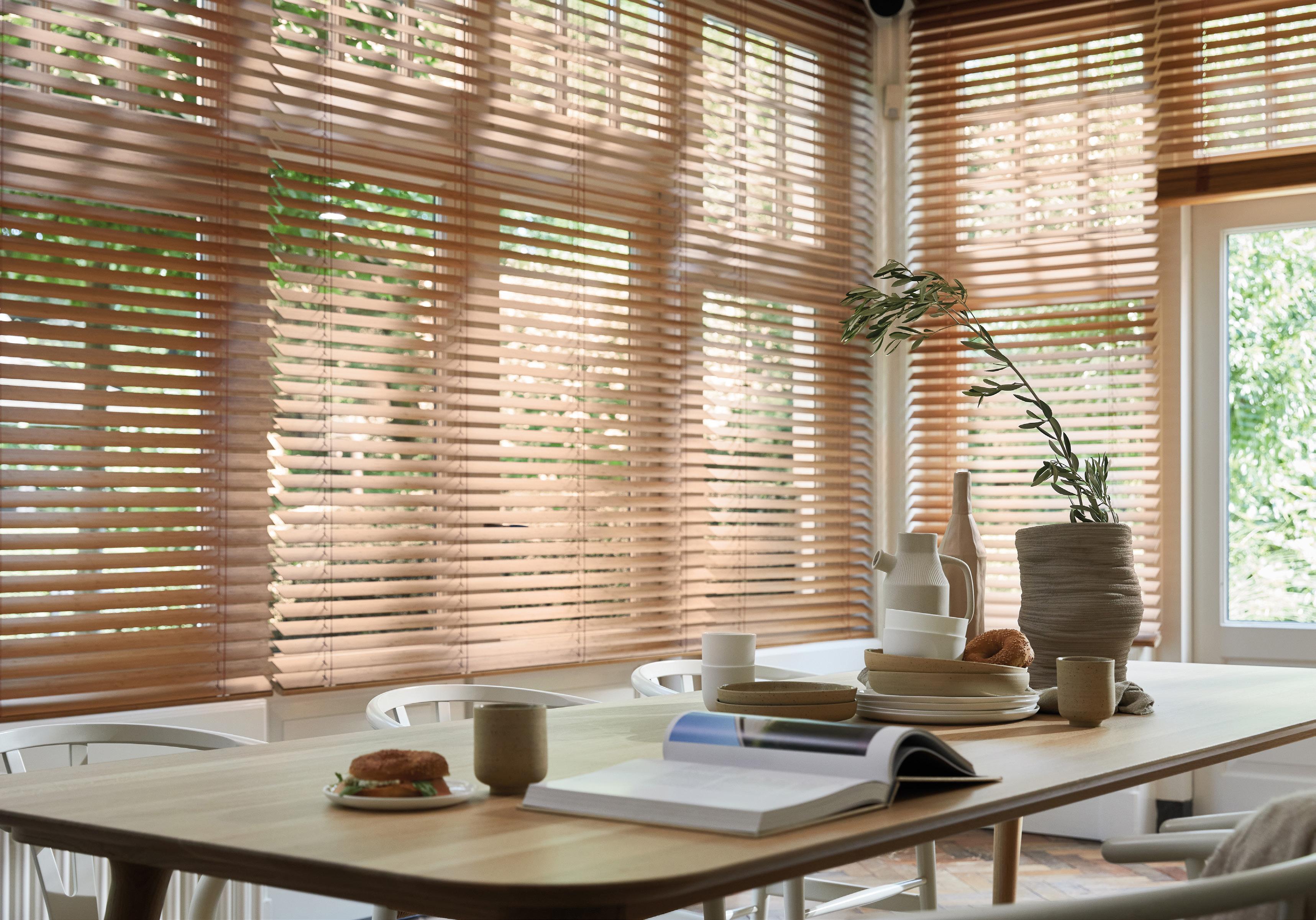 De jaloezieën zijn gemaakt van de beste houtsoorten en houtalternatieven. Je hebt de keuze uit een met zorg samengesteld kleurenpalet van natuurlijke hout- en verftinten, zodat de jaloezieën perfect bij je interieur passen.