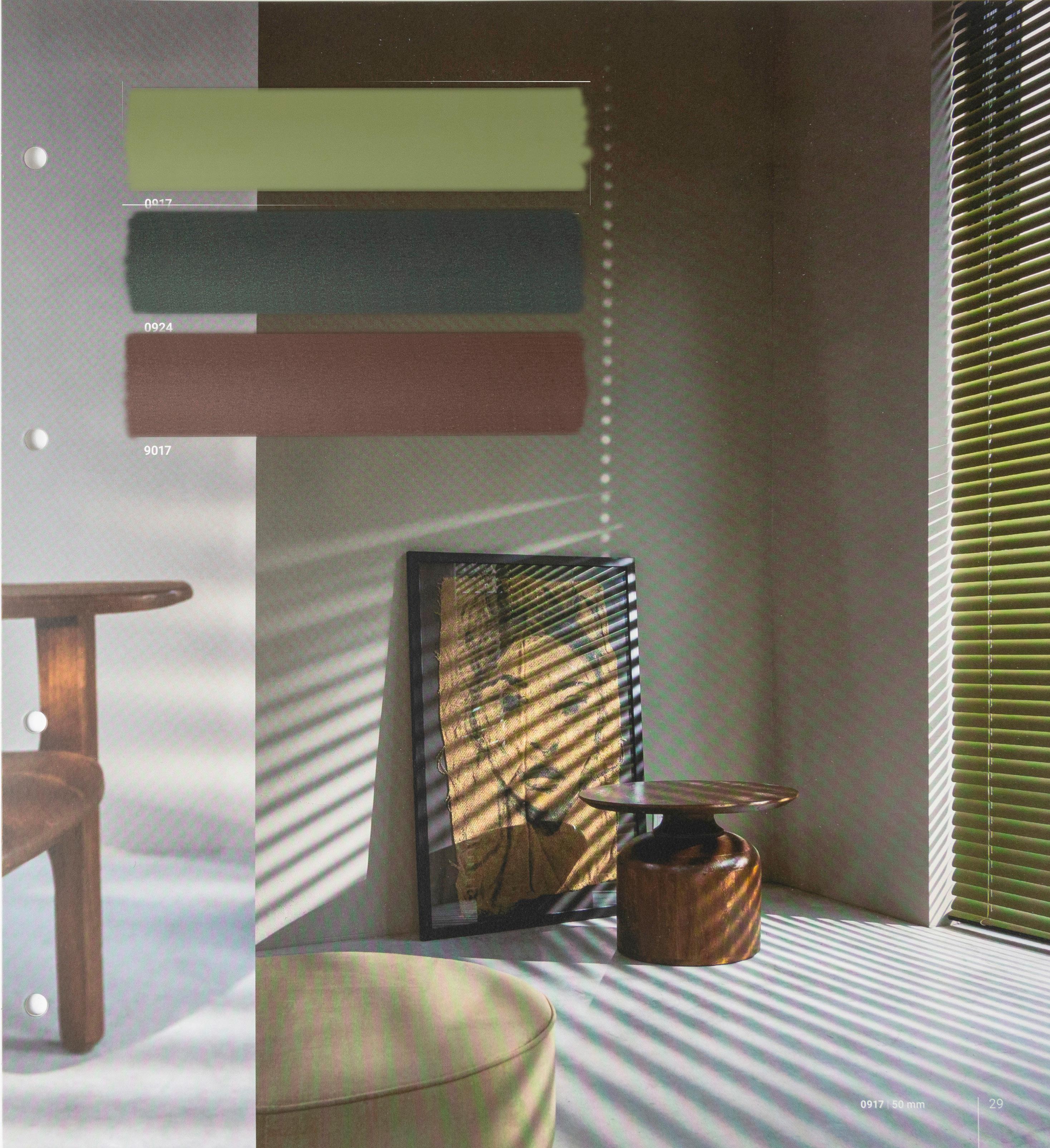 - Voor middelgrote tot grote ramen is de 35 mm lamel met zijn eigentijdse uitstraling een uitstekende keuze. Geniet van zacht gefilterd licht terwijl je de warmte en schittering onder controle houdt, zelfs in vochtige ruimtes zoals badkamers.