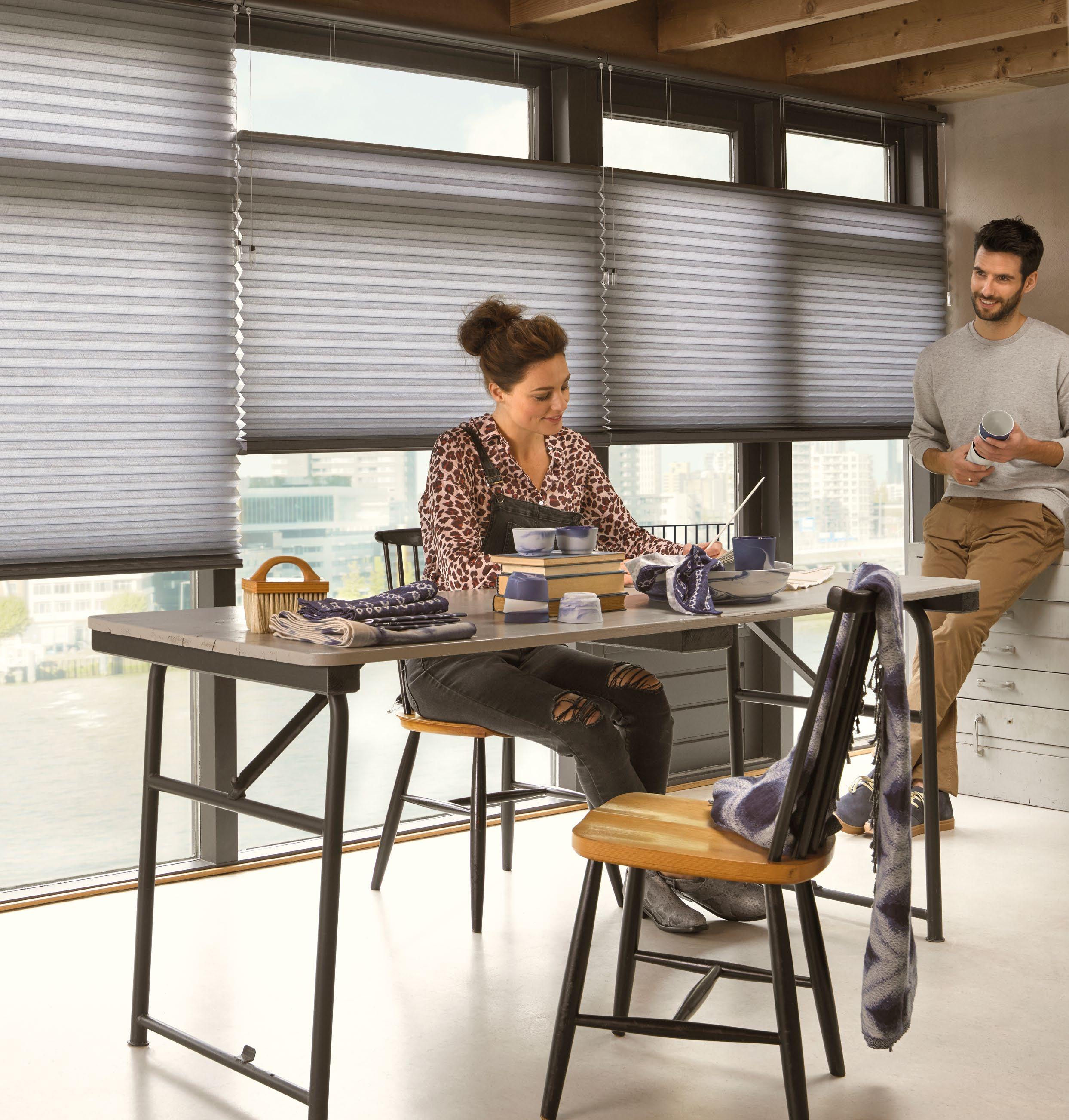 De Duette® Shades collectie biedt een uitgebreide keuze aan materialen die helpen het licht en je privacy te reguleren.