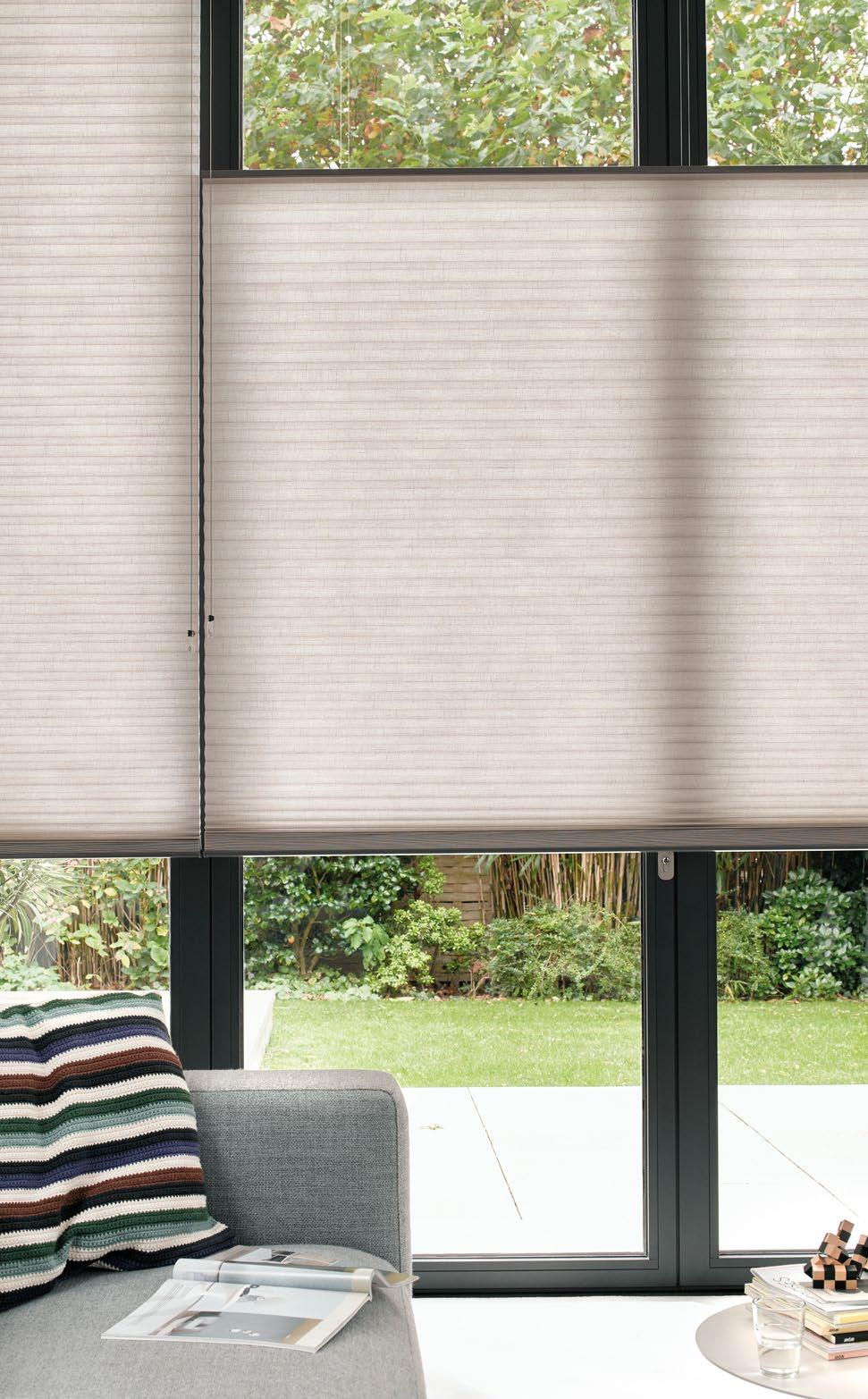 De Duette® Shades collectie biedt een uitgebreide keuze aan materialen die helpen het licht en je privacy te reguleren.