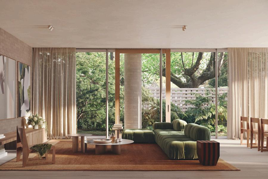 Expansive open-air courtyards and sprawling greenery will be complemented by established canopy trees, making this development a true haven of natural beauty Eckersley Garden Architecture has ensured that the landscaping integrates seamlessly with the architecture creating an inviting environment that balances both aesthetic beauty and functionality