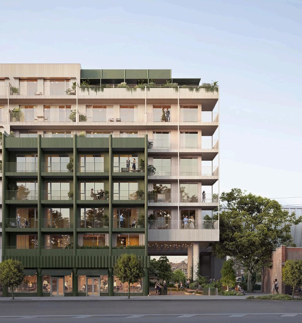 Developed in partnership with state government on land adjacent to the Murrumbeena Station this mixed-use project will comprise 110 dual-aspect, high amenity apartments and 1,290 square meters of new retail amenity within the existing Neerim Road village Design collaboratively by Fieldwork Architects and MALA