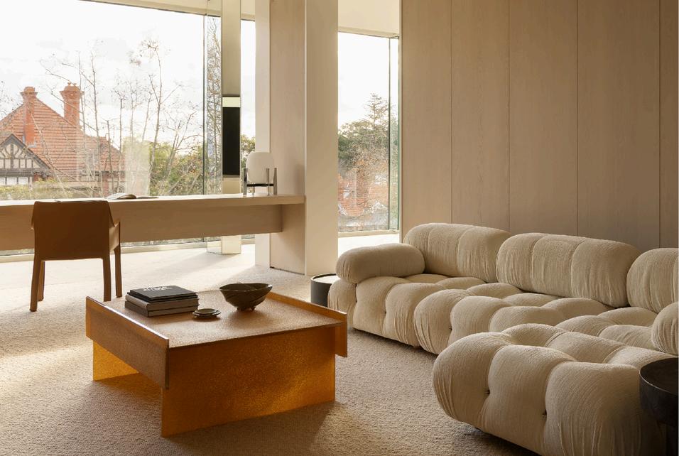 Expansive glazing invites daylight and breezes through each residence while the natural palette warm timber and soft eucalypt tones creates an atmosphere of calm and continuity