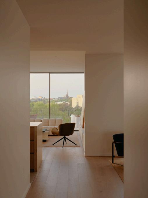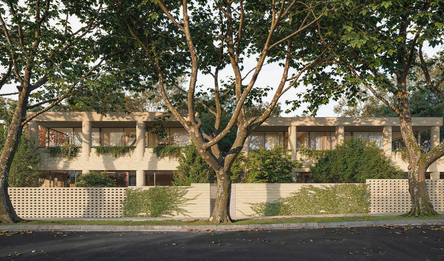 In response are five finely scaled buildings that emerge gently from the landscape, their form and materiality shaped by the rhythm of the street and the beauty of the surrounding tree canopy These are homes in the truest sense – spacious, quiet and deeply connected to their locale