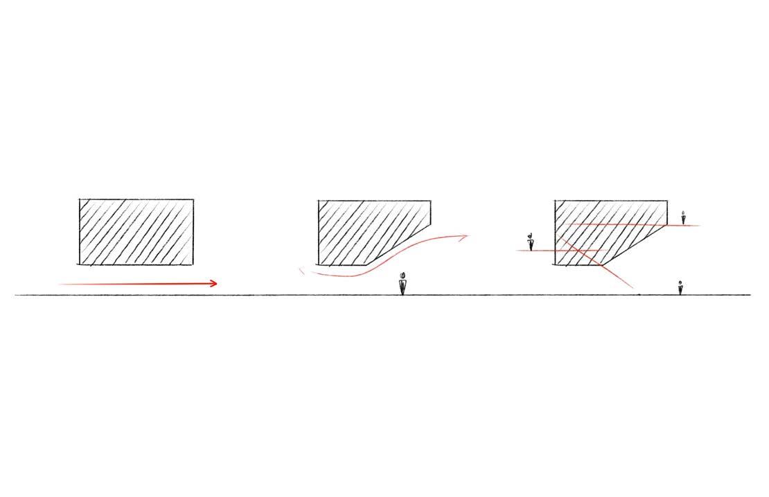 2. The building will remain the surrounding contexts’ height. This preserves the human scale providing a more welcoming space while people approaching the site.