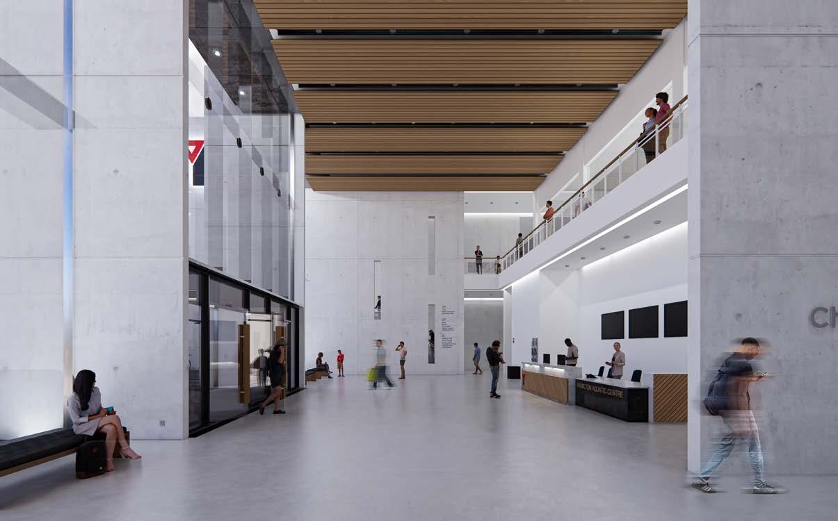 To enhance Hamilton city’s quality, the Aquatic centre is located at 51 King St, with the intent of connecting the existing Gore park with the walkable King William St. The idea is to provide an engaging experience for pedestrians by expressing the setback of 6 vertical planes. On the West building elevation, the kinetic facade system allows people to experience both sound and visuals created by the facade. In addition, the idea is to make the walkable street’s intersection a more enjoyable and active space for all the users in Hamilton.