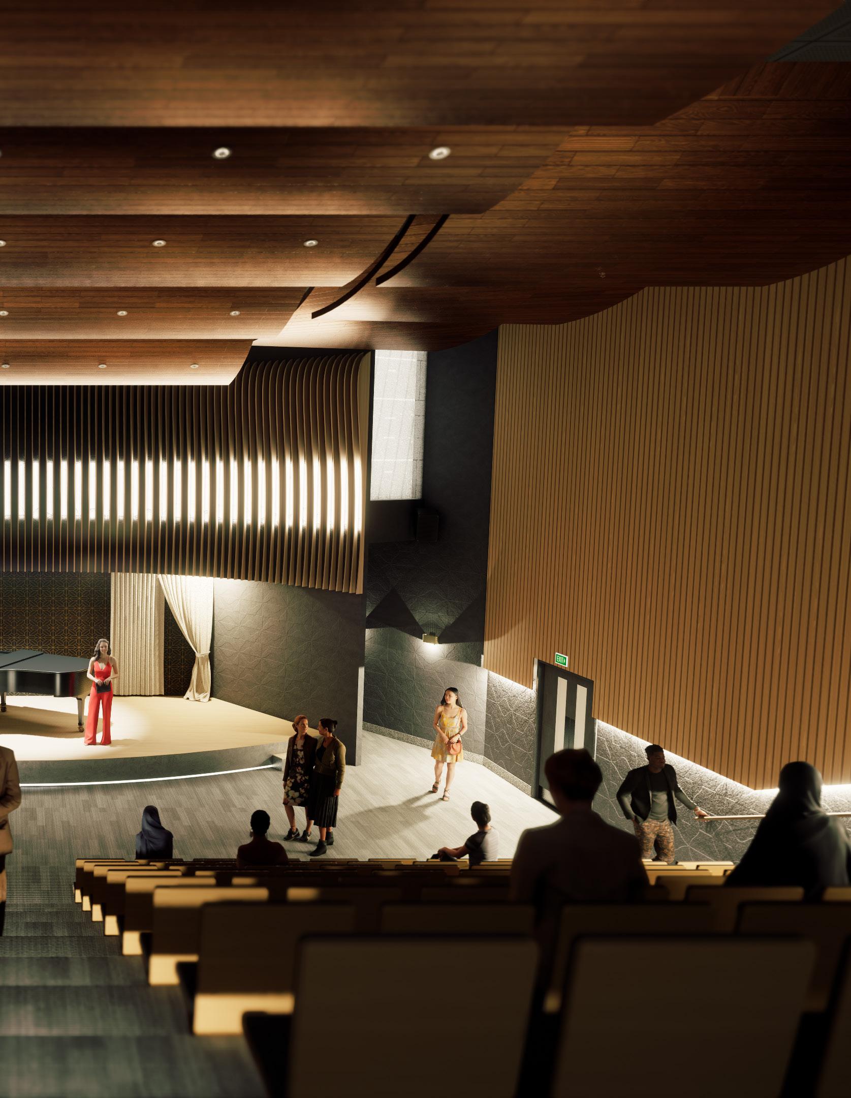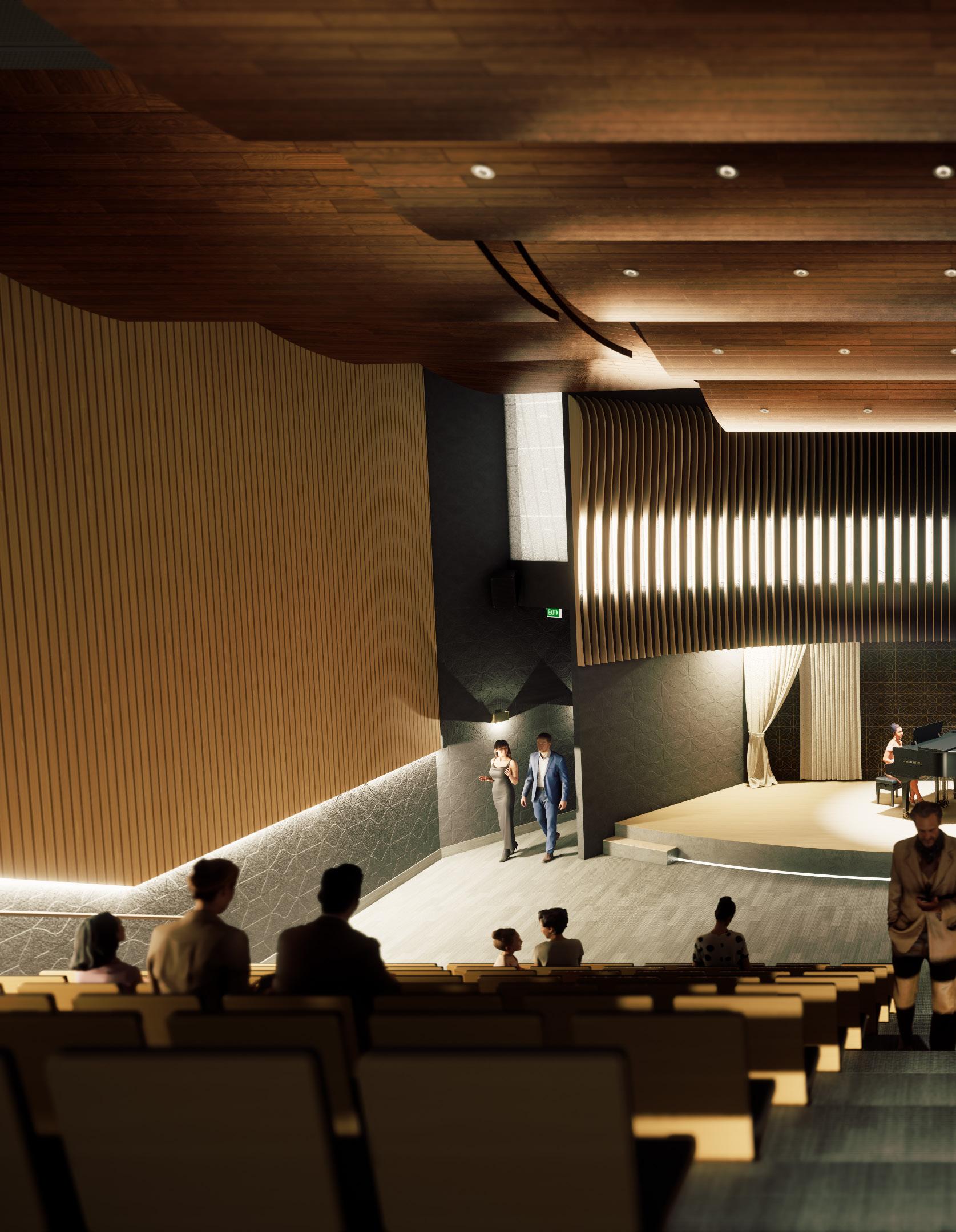 Carve out the structure to align with the seating arrangement of the performance hall.