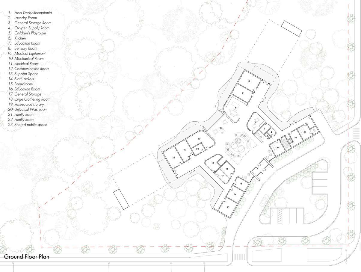 past decade. It provides shelter to terminally ill patients have exhausted all their resources during the treatment themselves. It is also about those who find refuge in have gone through similar journeys. The design of a families, and caregivers. The Kayblair Hospice is not space emerged into nature that allows them to explore.