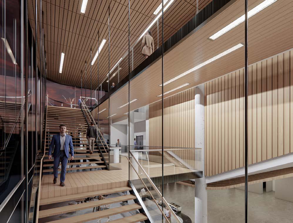 Situated between Courthouse Square and The Cathedral Church, the site is bisected by Church St, creating two symmetrical areas that juxtapose high-rise and low-level structures. This layout inspires the creation of a threshold within the building while preserving the continuity of the two green spaces. Given that most traffic and pedestrians approach King St, the design features an exposed staircase to capture attention from the intersection, showcasing the interior elevation. The performance space is conceived as a “floating mass” that unites the two parks. Boasting an entire glass facade, the design aims to reveal the building’s interior, creating a visually engaging and inviting atmosphere for visitors and passersby alike.