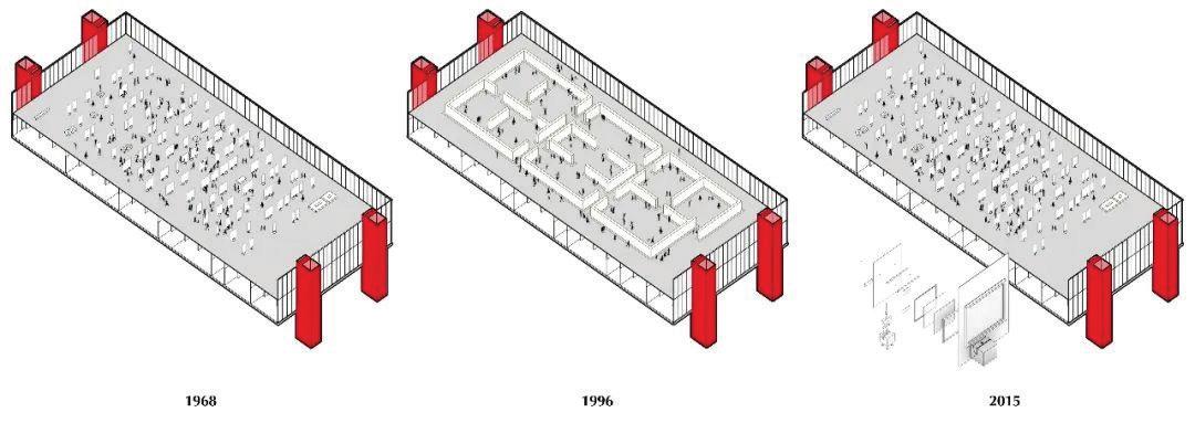 Interior layout of the picture gallery went through a series of transformations. After Lina Bo Bardi‘s death in 1992, glass display easels were removed in 1996 and brought back in 2015, aiming to reinstating the original value of transparency and fluidity and spatial amplitude.