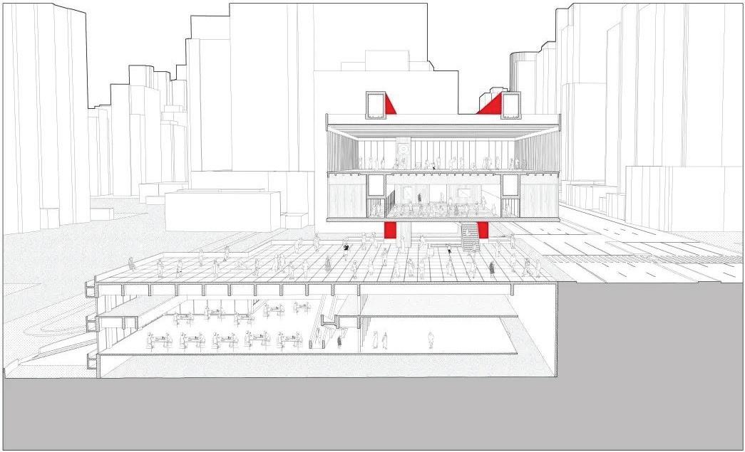 The program proposal for MASP holds the social and educational function. Museums host regular exhibitions, promote educational aspects of art contests and conferences and also open schools on topics not widely used. The ground level void is proposed in order to protect the major existing urban gathering space along Avenida Paulista— city’s main financial and cultural artery. On the other hand, the free space under the span echoes with the interior layout of the picture gallery, which further accentuates the idea of continuity and openness and emphasizes the human oriented aspect.