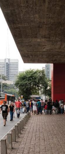 building on Avenida Paulista. Julho compose its transversal and sensorial experience,” (The nature of the building as well as its the verticality of the surrounding The ground level plaza has 9 de Julho and beyond. With MASP building has a strong demonstrates an understanding of the the highest point of the city… broader scale, beyond its more Foundation, 2018).