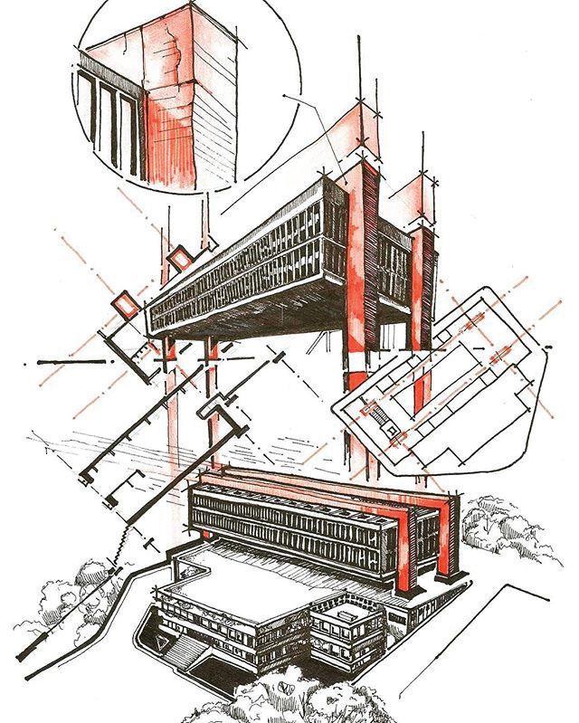 Lina used both modernist and brutalist elements to express contrast and tension, while the concrete columns were enhance the lightness and verticality.