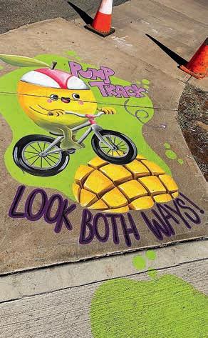 Among the additions to the precinct, which already includes basketball courts and a bike pump track, the group built and painted three new public seats, installed two bike racks to make riding to the pump track easier and safer, and planted and decorated vibrant planter boxes designed to slow vehicles down. They helped local artist Tayla Beynon paint a massive 170-metre-long footpath mural with road safety messages and a half-court basketball mural with artist Sally Ridge. Once completed, the group held a street party to reveal the big makeover.