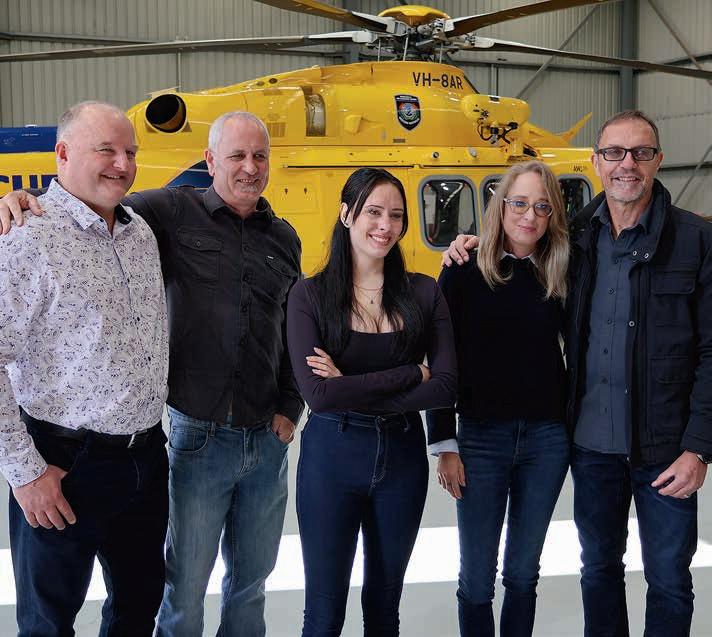 ABOVE: Critical Care Paramedics Michael Ficko and Roland Eagleton, Skye Hill and Alicia Wells, and Pilot Lincoln Gabel.