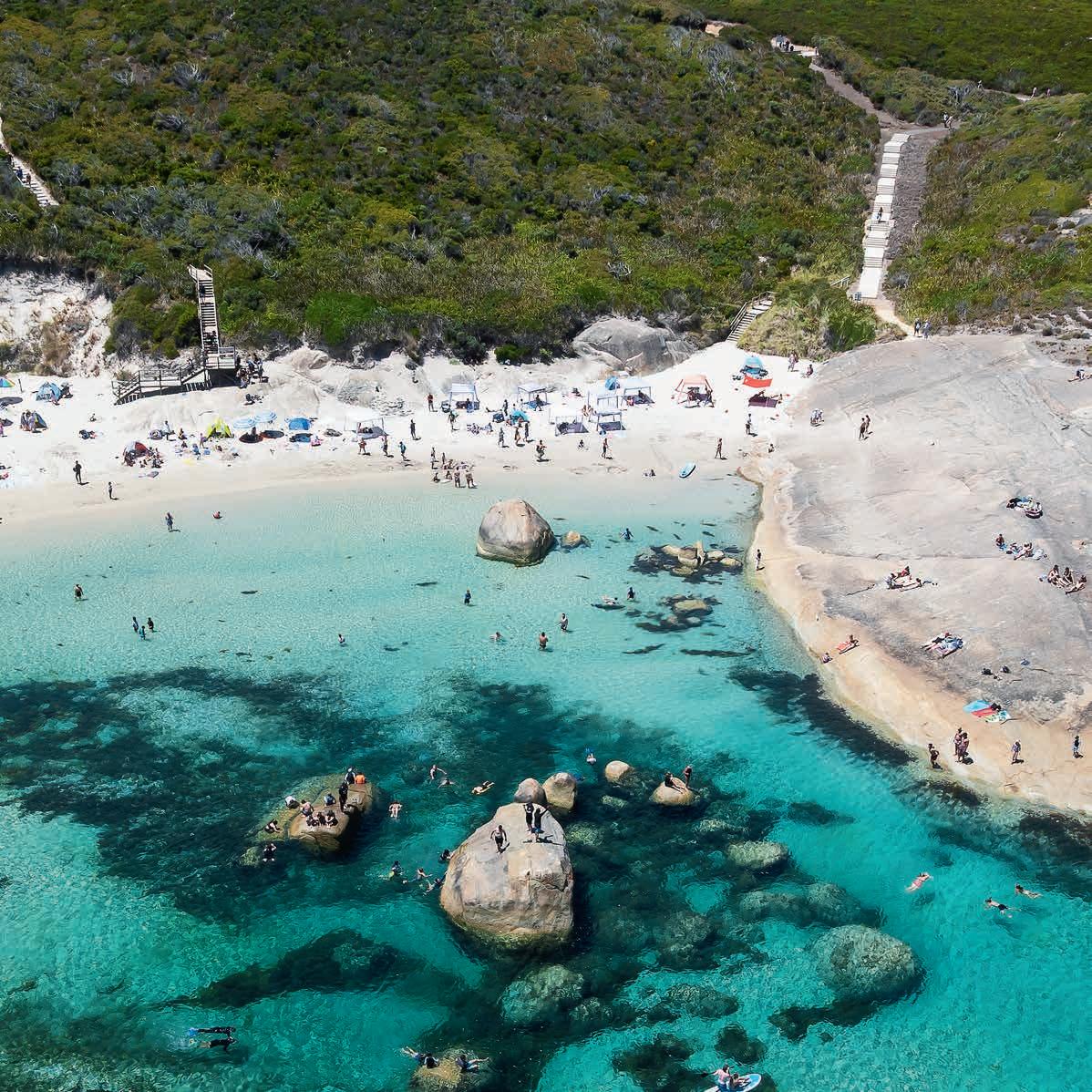 These side-by-side beaches are arguably the most tranquil and beautiful swimming spots in the region. Enclosed by giant rounded boulders, the calm waters are ideal for paddling, swimming, and snorkelling. The only public facilities here are the toilets at Greens Pool car park. Be aware that during peak holiday season parking space is limited.