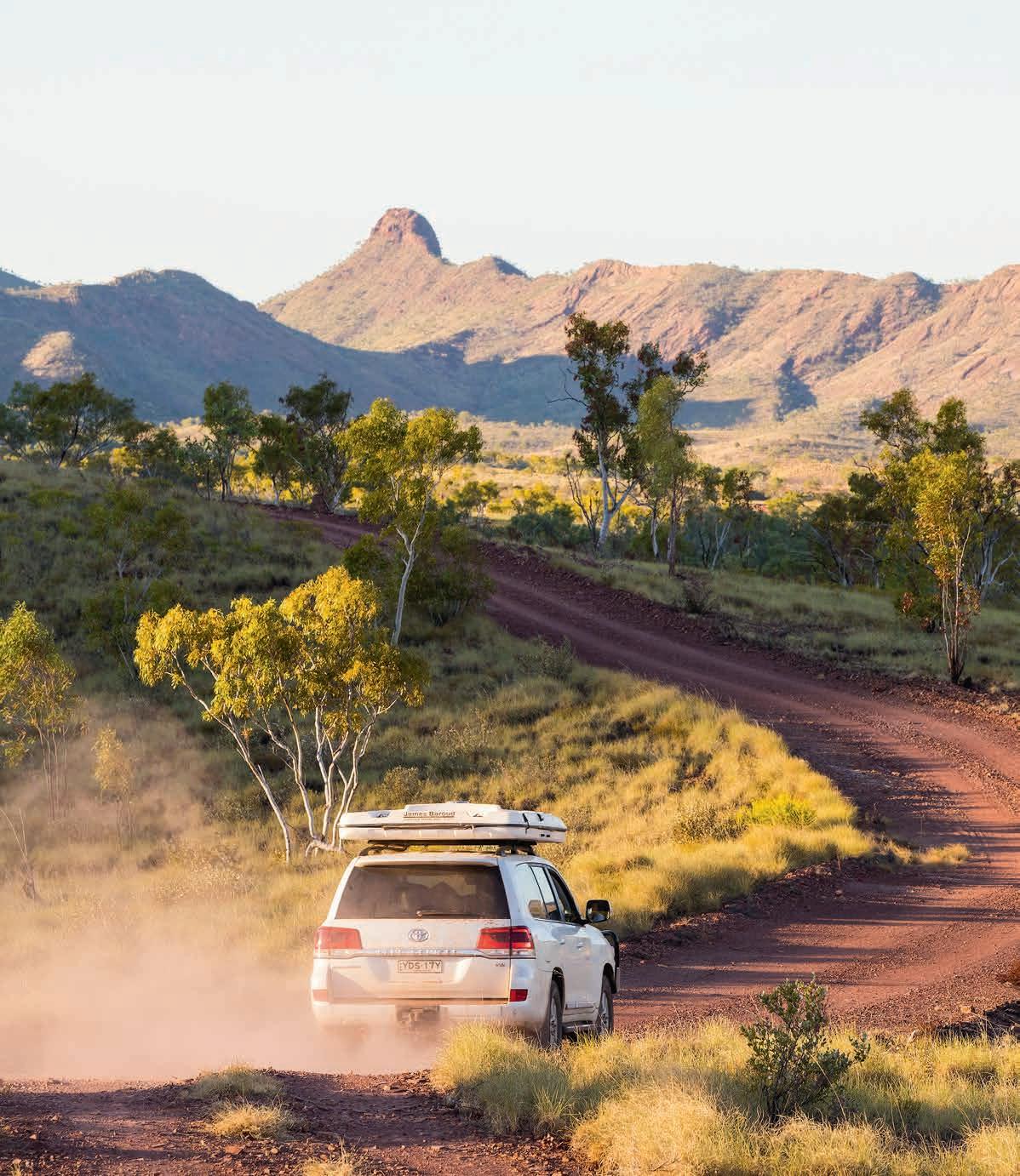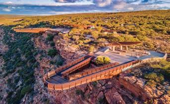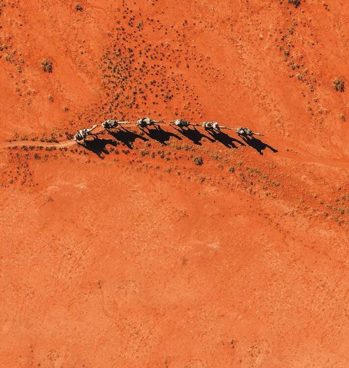 A visit to Karijini isn’t complete without a climb up WA’s secondhighest peak—Mount Bruce. While the 9km return hike starts out easy enough, the rest requires some serious grit. The trail to the peak includes a near vertical climb and a tiptoe across a narrow ledge, with the help of a chain attached to the rockface.