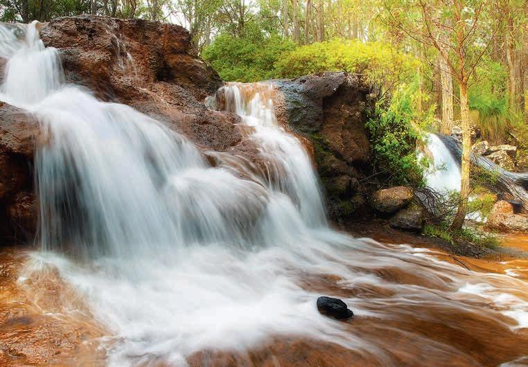 For a scenic walk near Perth, head to the Eagle View Trail in John Forest National Park. This 15km return hike is a journey through serene jarrah and wandoo woodlands, with views of the Swan Coastal Plain to the Perth CBD. Highlights on the trail include waterfalls and, when visiting in spring, a spectacular display of wildflowers.