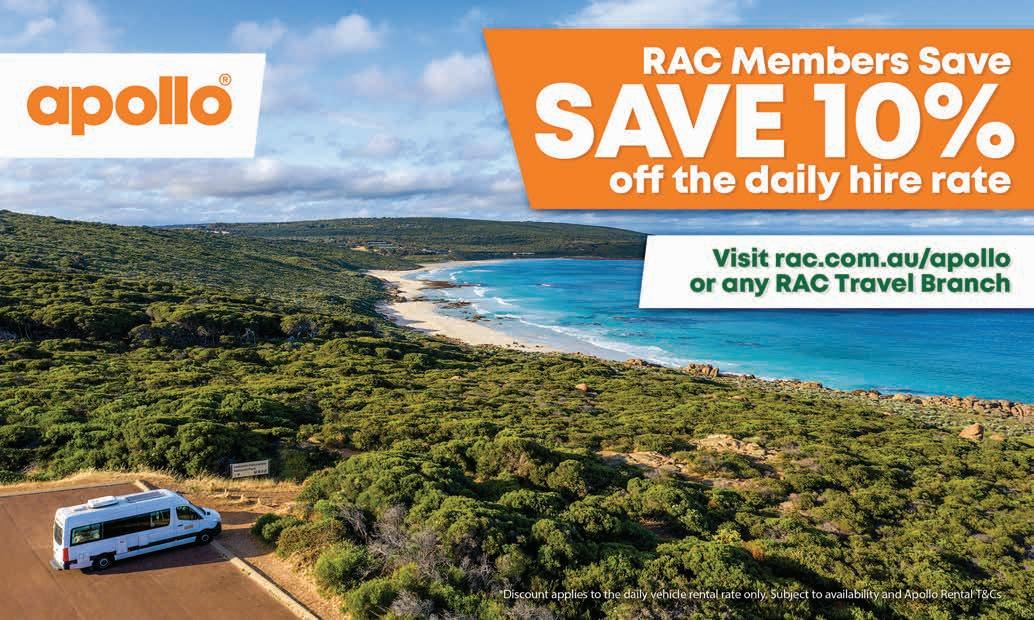 The opinions contained in this publication may not be shared by the Royal Automobile Club of WA (Inc) or its related bodies corporate (together “RAC”) or any of its or their councillors, directors or employees. Advertisements in Horizons are the responsibility of the advertiser. No person should act or rely upon such opinions or advice and RAC accepts no liability for them. Any rewards or rights provided to a member cannot be transferred, assigned, sold or redeemed for cash. Inclusion of a product should not be construed as an endorsement by RAC.