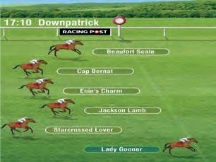 BETTING FORECAST 15-8 Starcrossed Lover, 3 Eoin’s Charm, 7-2 Lady Gooner, 4 Jackson Lamb, 10 Beaufort Scale, 16 Cap Bernat, 50 Microscope, Solitaire Lady, Times A Wastin, 66 Augusta George, 150 Dans Lariat