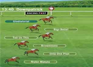 RACE 2: 1.40pm THE NORTHERN IRELAND ON COURSE BOOKMAKERS ASSOCIATION OPPORTUNITY HANDICAP HURDLE OF €11,000 (80-109) Winner will receive €6,600 (Penalty Value: €6,490), Second will receive €2,200, Third will receive €1,100, Fourth will receive €550, Fifth will receive €330, Sixth will receive €220. An extended handicap hurdle for four years old and upwards rated 80-109. About 2 miles 1 furlong 165 yards. €99 to enter, €11 extra if declared to run. Penalties - Winner of a hurdle race after calculation of the handicap shall carry 7lb extra for each hurdle race won. Riders: Confined to Professional Riders under I.N.H.S. Rules who have not lost the right to claim the allowance under Rule 52. Allowances - (which are not cumulative, up to and including 11th June) Riders who have not ridden the winners of 25 *races allowed 4lb. Those who have not ridden the winners of 40 *races allowed 2lb. No allowance under Rule 52 may be claimed. *Including races under any N.H. Rules or Rules of Racing. Handicaps calculated 11th June. Speed sensing equipment will be used in this race.