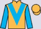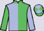 Breeding g Bay by Es Que Love - Winnifred (Green Desert) Bred by Amrath Business Management Colours LIGHT BLUE & DARK BLUE HALVED, light blue sleeves & cap