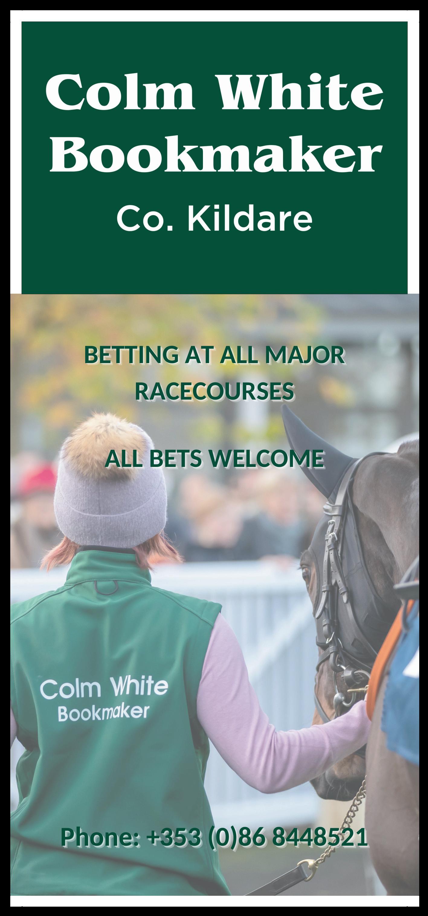 A special thank you goes to Colm White for his ongoing support of the Colm White Bookmaker Beggar’s End Handicap. A well-known face in the bookmaker’s ring around the country including here at Naas Racecourse, we are delighted to have Colm back supporting today’s valuable contest. You will see he has generously given all racegoers a €10 matched bet in the racecard, so make sure to call down to his pitch today.
