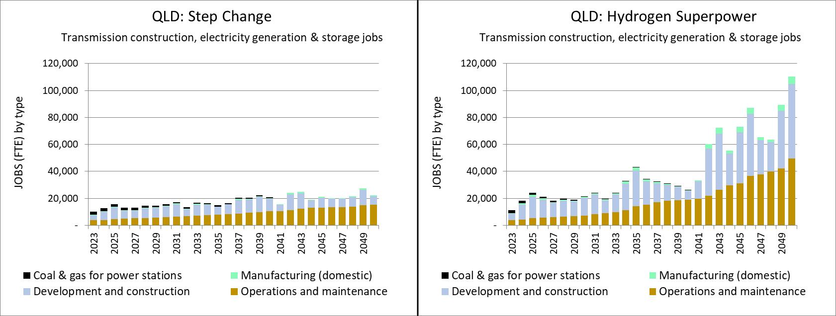 Figure 15 Queensland, jobs in transmission (Step Change, Hydrogen Superpower, Slow Change)