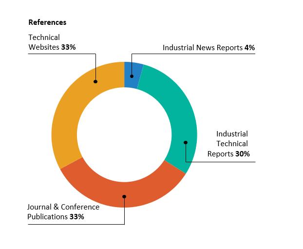 During the projects scoping stage, the RACE for 2030 CRC contributed an initial 43 research questions to the opportunity assessments design. These questions were categorised and assigned to four work packages (Consumers and regulatory framework, Business models, Planning and design, Demonstration and operation) which delved deep and identified the most pertinent current research gaps. In each work package, researchers explored the relevant literature as well as industry reports. The literature review made use of a wide spectrum of reference materials, concentrating predominantly on industry technical reports and technical websites. This reflects the fast-moving nature of this domain, where the latest information is best obtained directly from practitioners and industry. The genre composition of the 256 references utilised in this opportunity assessment is provided in Figure 1 below.