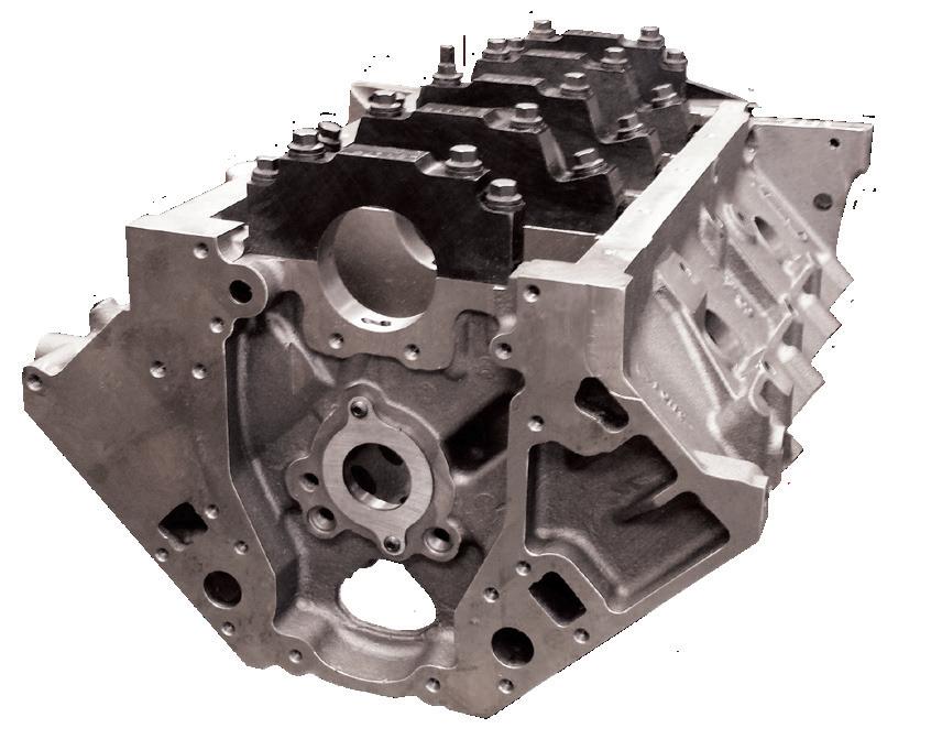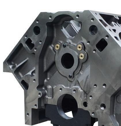 Ductile Iron or billet steel main caps with splayed outer bolts for maximum strength. Splayed outer bolts on the main bearing caps are secured into the strongest part of the main webs. Big blocks have provision for extra head studs in valley.