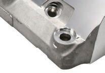 Raised and machined valve cover rails help to contain oil and increase valve cover rocker arm clearance.